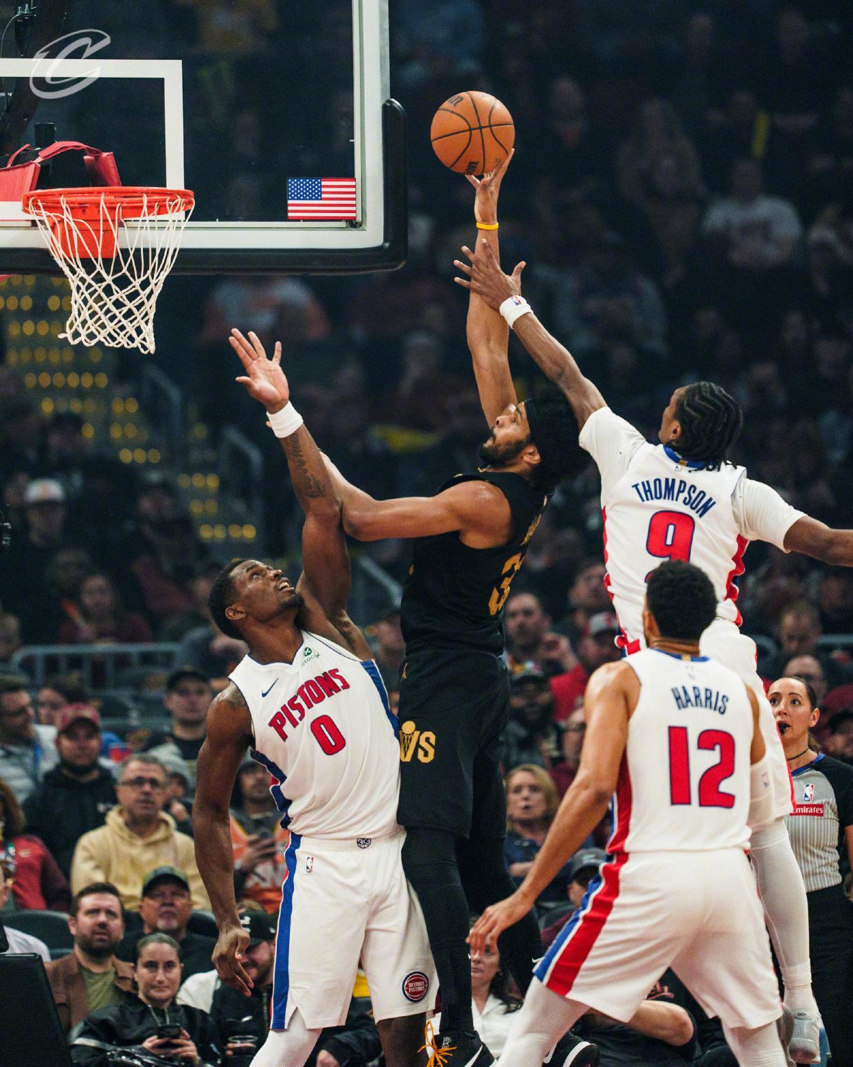 首节开打,泰森上篮得手,杜伦4罚2中,阿伦勾手打进。莫布里篮下取分,哈登轰进3分球,骑士打出了9比2的开局,活塞请求暂停。哈里斯抛投三不沾,坎宁安跳投打进,克利夫兰连续外线不中,泰森大帽坎宁安。泰森抛投取分,杜伦上篮得手,邓恩罗宾逊轰进3分球,杜伦暴扣,活塞打出了9比2的攻势。莫布里2罚全中,坎宁安单打取分还以颜色,阿伦、哈登与奥萨尔在禁区斗法。
