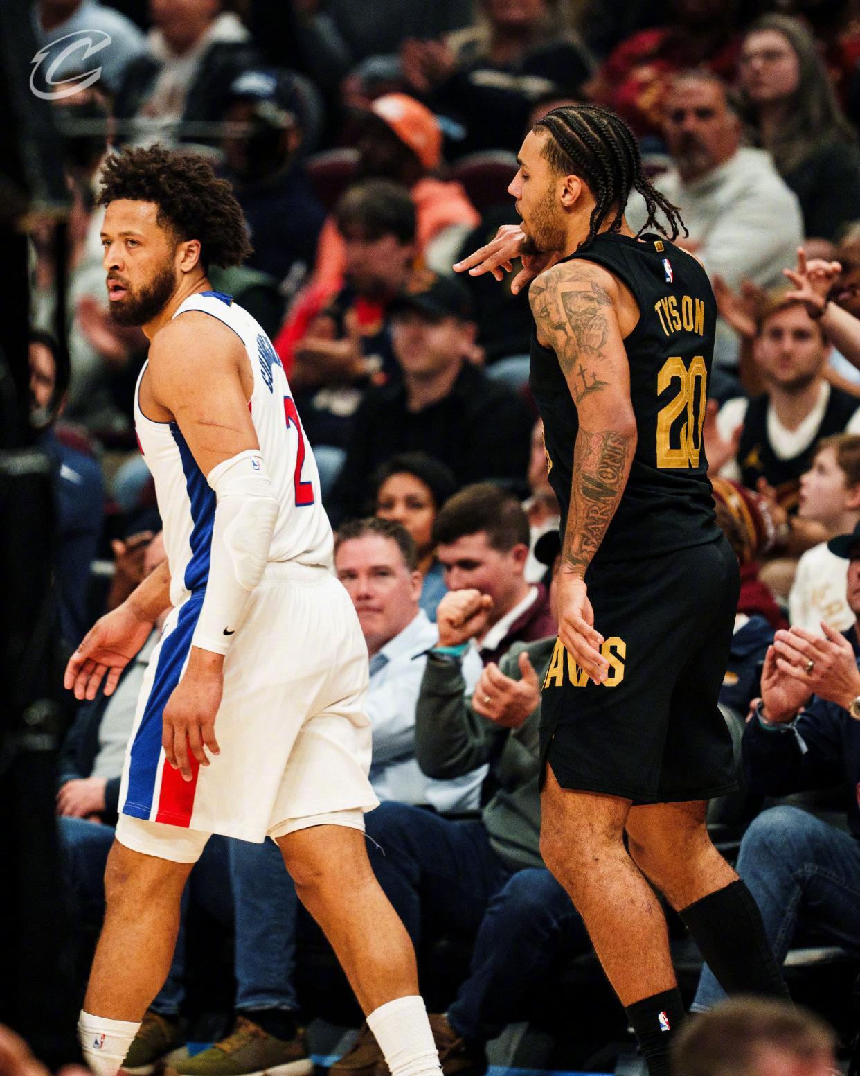 骑士队虎将杰伦泰森,在此役表现突出。泰森上场32分钟,15投8中,三分12中5、罚球3中1,狂砍22分3篮板4助攻2盖帽,正负值+8。泰森以53%的命中率轰下了全队的最高分,他还投进了全场最多的5记3分球。泰森在进攻端手感火热,末节更是独得7分成为取胜功臣。决胜时刻,泰森罚球命中,帮助骑士收下了比赛。
