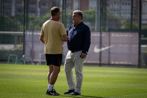 训练在当地时间下午6点开始,巴萨主席拉波尔塔到达现场,陪同他的还有第一副主席拉法-尤斯特、高管恩里克-马西普和亚历杭德罗-埃切瓦里亚。